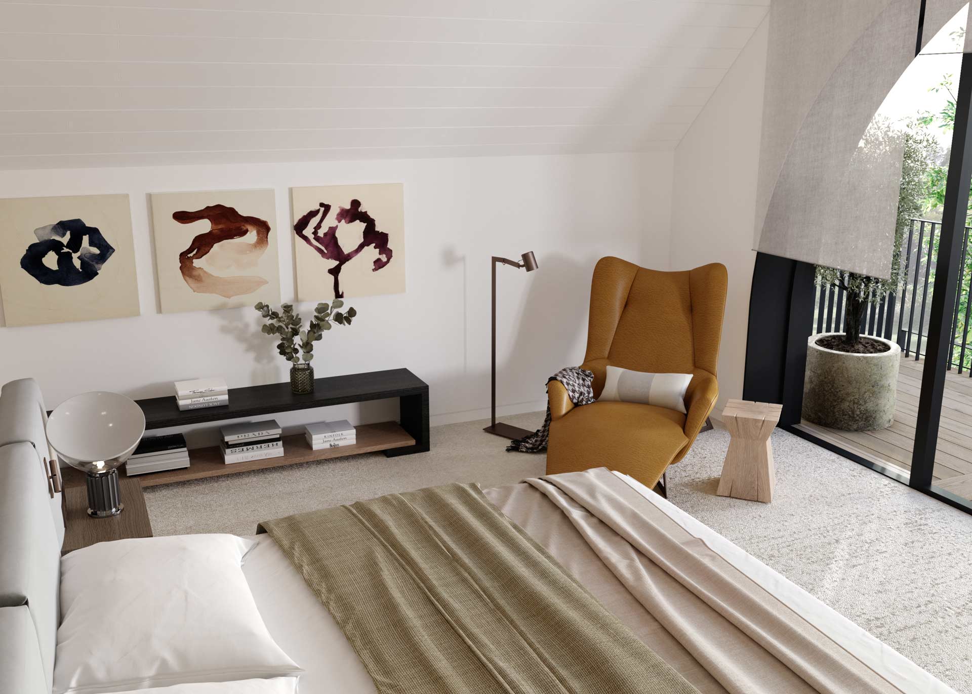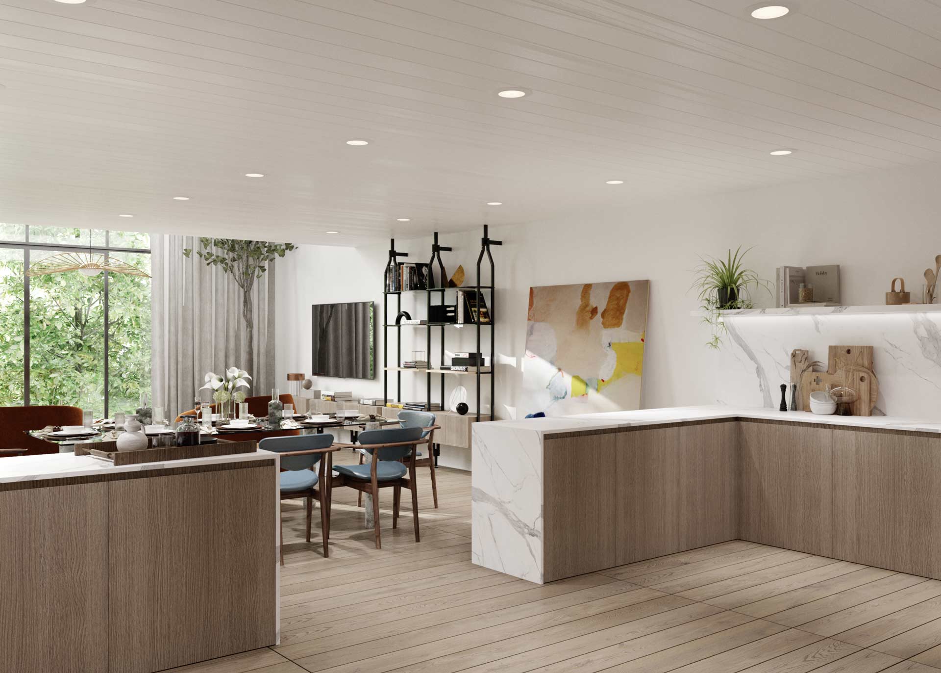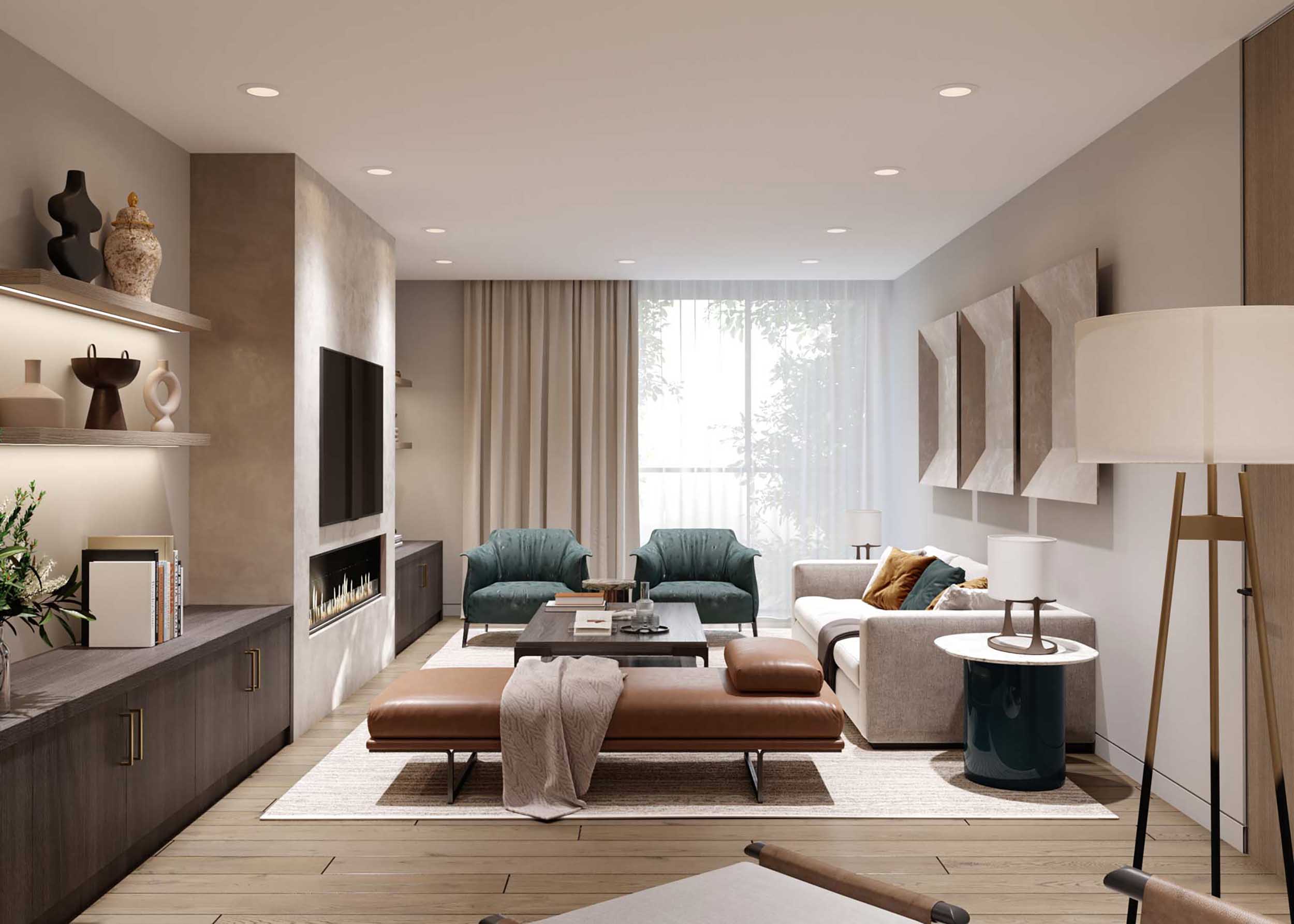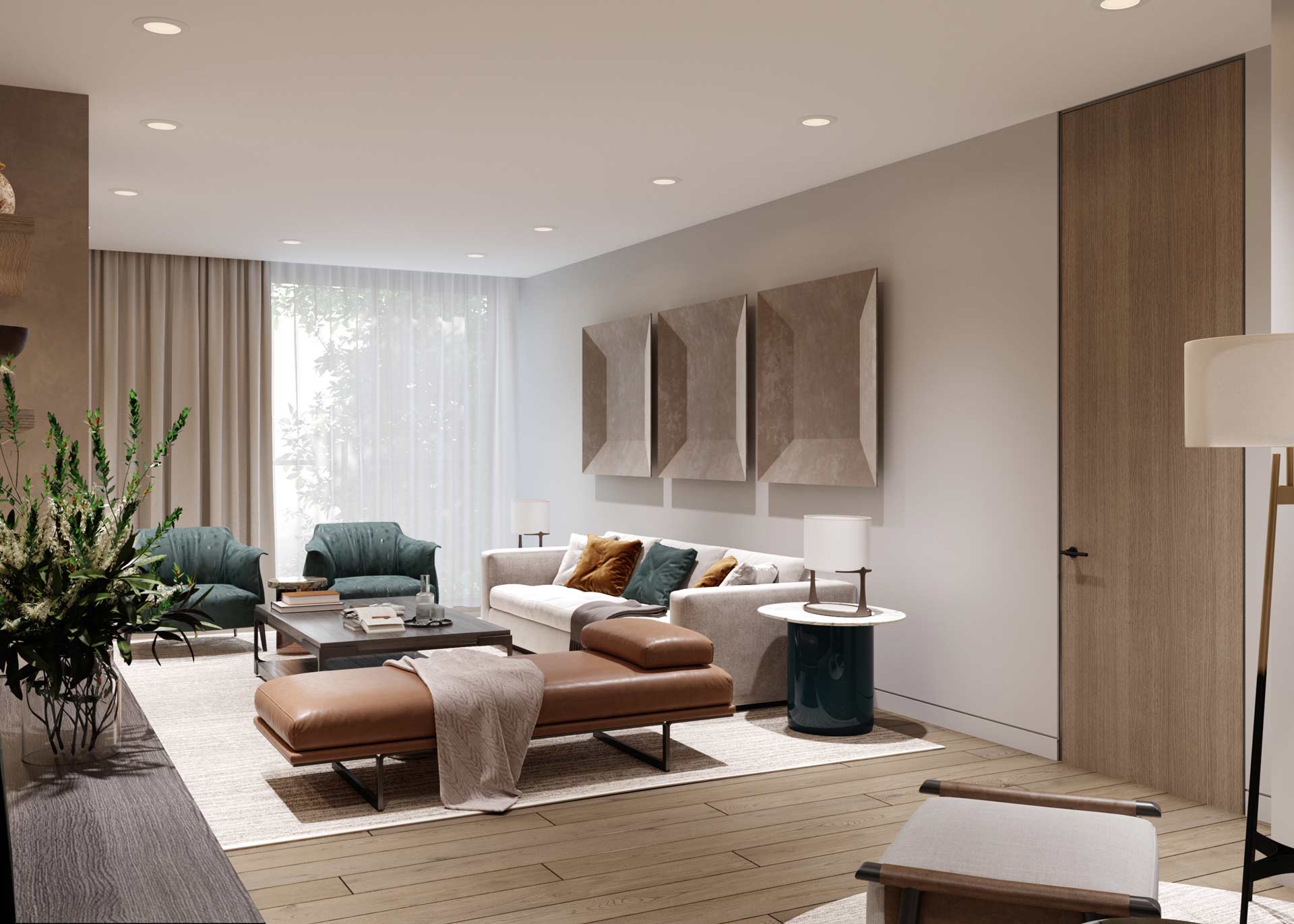 The bedrooms are designed for peace and tranquillity with calming hues, tactile finishes, and sympathetic lighting. Master suites come with bespoke Italian joinery.